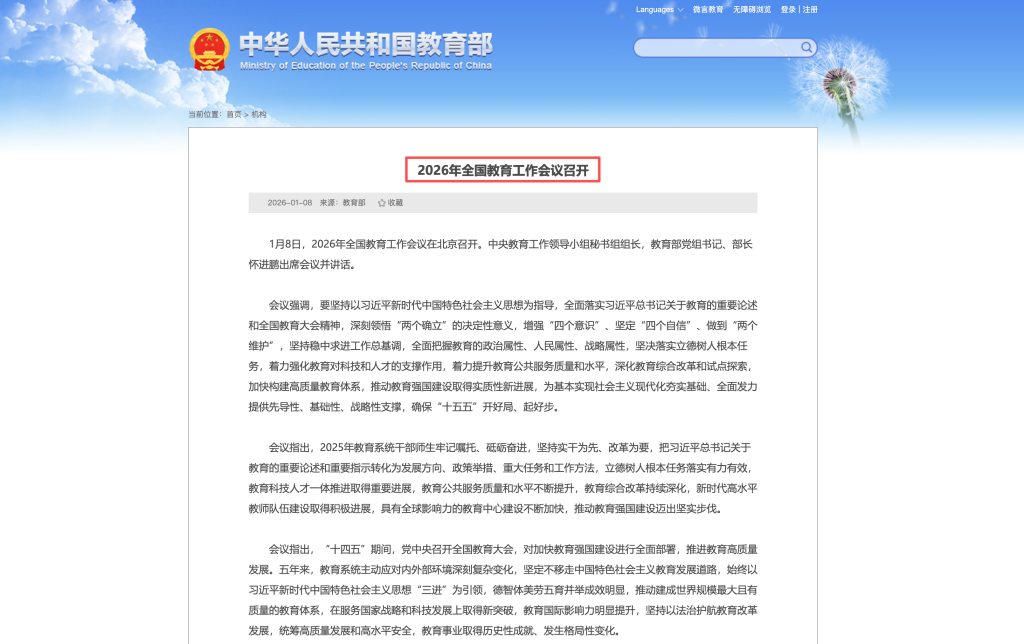 2026年全国教育工作大会意义非凡,作为 “十五五” 规划开局之年以及教育强国建设三年行动计划的关键节点,教育在国家战略全局中的地位进一步提升。本次大会明确将 “人工智能赋能教育” 置于前所未有的高度,提出普及全学段、全要素AI通识教育。