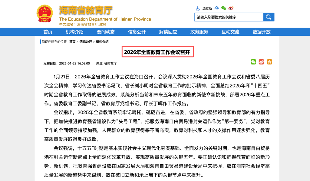 海南省在2026年全省教育工作会议中提出,启动遴选150所中小学开展 “人工智能+教育” 试点校培育工作,致力于培育一批人工智能应用场景典型案例,为全省AI教育发展积累经验。