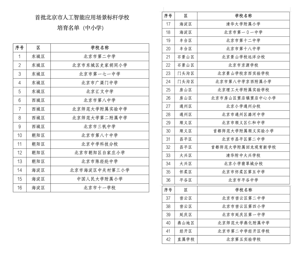 北京市教育委员会关于公布首批北京市人工智能应用场景标杆学校培育名单的通知