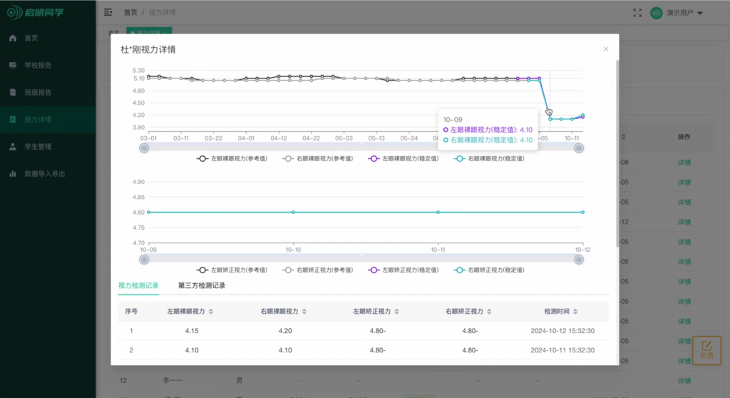 还能自动建立学生电子视力健康档案,实现数据实时更新、终身可追溯,既契合政策“精准防控”要求,也为学校提供了可量化的防控数据。