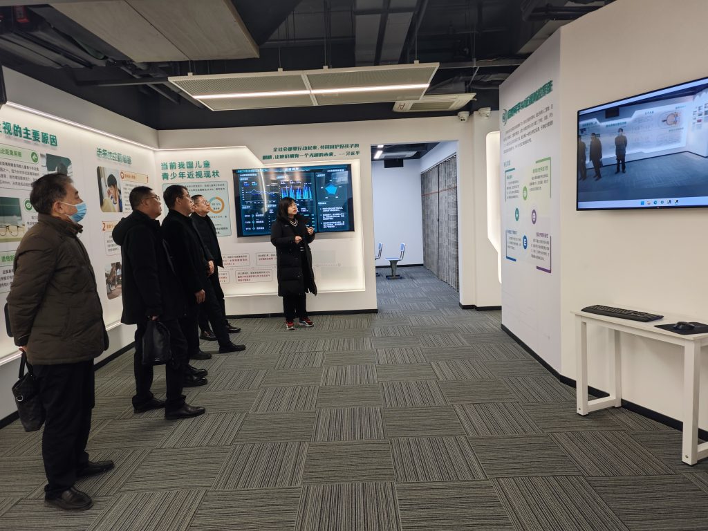 现场,考察组一行逐一体验测训、眼操,以及系统的教室端、管理端、手机端,从快速检测到数据溯源,从方案生成到效果追踪,每一个环节的高效与精准,都让领导们频频点头,直观感受了AI技术在教育健康领域的应用成效。